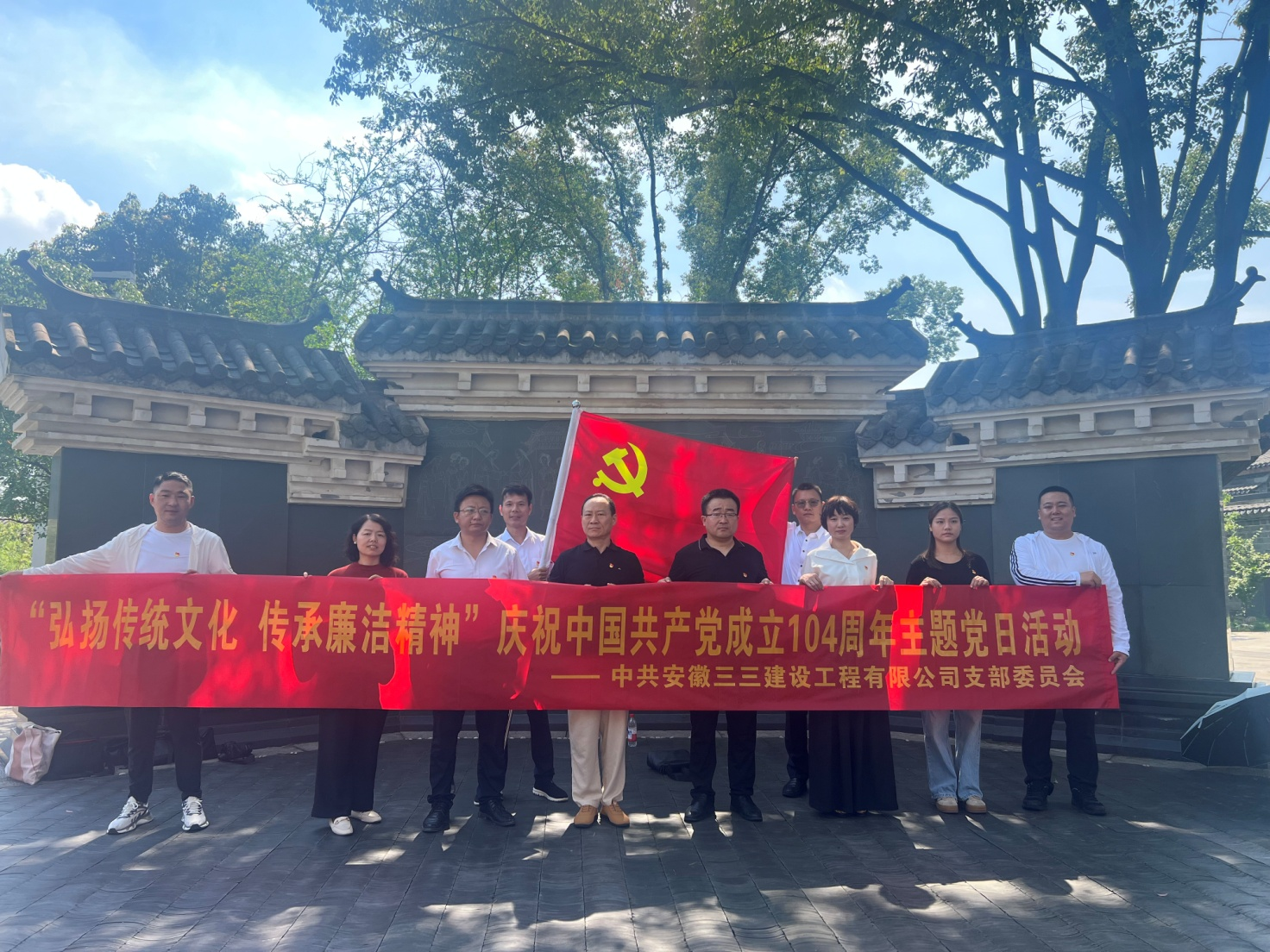 為慶祝中國共產(chǎn)黨成立104周年,深入學(xué)習(xí)貫徹習(xí)近平總書記關(guān)于黨風(fēng)廉政建設(shè)的重要論述,全面落實中央八項規(guī)定精神,2025年7月1日,三三建工黨支部組織黨員和積極分子赴桐城市六尺巷廉政教育基地,開展了“弘揚傳統(tǒng)文化,傳承廉潔精神”主題黨日活動。